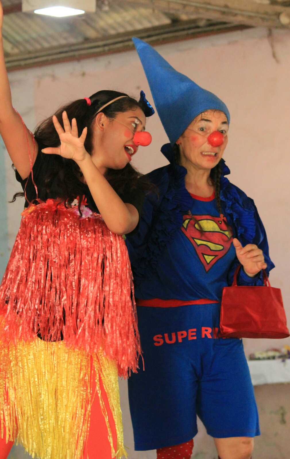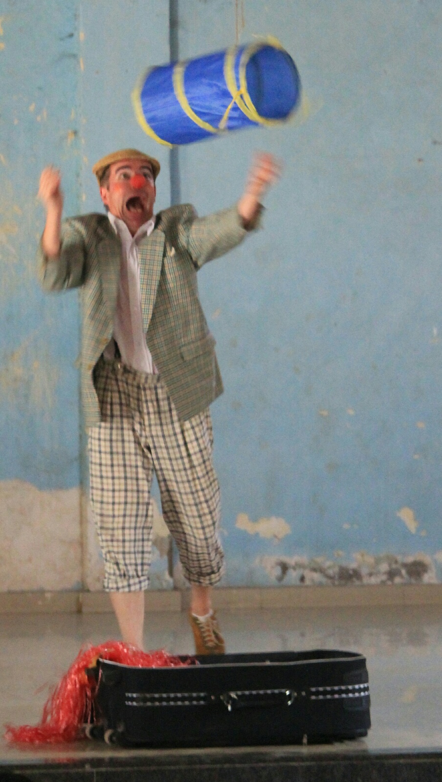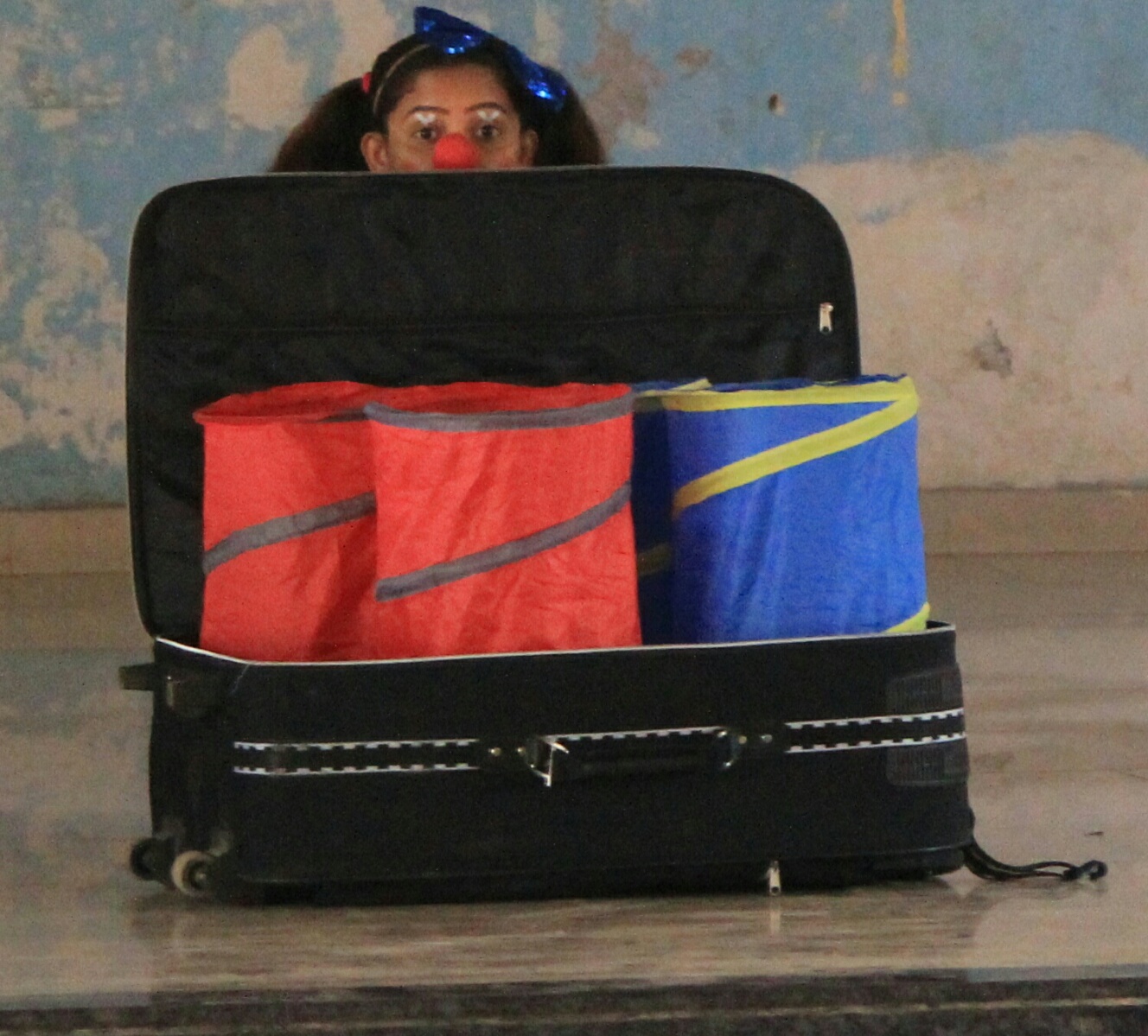 Gestern spielten wir wieder in einer Institution der Children’s Aid Society Mumbai. Dort leben ausschließlich Jungs, aller Altersstufen, Waisen und straffällig gewordene Jugendliche. Circa 150 Jungs verfolgten brav sitzend unsere Darbietung und ungefähr 50 weitere Menschen, drumrumstehend. Im Anschluß zeigten 10 der Jungs ihre eigene (ohne Anleitung oder Vorbild) einstudierte Choreographie zu einem beliebten indischen Hit. Es war umwerfend, mit welcher Hingabe sie ihren Tanz präsentierten, mit akrobatischen Anteilen, und natürlich wollten die Clowns das auch lernen, bekamen ihre Chance, die sie grandios in den Sand setzten, denn so cool wie die Jungs kann natürlich kein Clown smurfen, grooven, hip-hoppen. Selten hat sich-auf-der-Bühne-blamieren so viel Freude gemacht ...