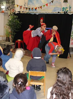 Zudem hatten wir die Ehre eine ganz besondere 6 Jährige kennenzulernen. Als Peterusilius in einer Szene zu weinen beginnt (weil die anderen beiden Clowns ihn geärgert hatten), stürmt das Mädchen auf die Bühne – umarmt und tröstet ihn. Klar tut es Frieda und Mucki fürchterlich leid. Soviel Empathie wird sofort belohnt: Nach einer kurz eingeflüsterten Anweisung, klettert das mutige Mädchen auf einen Stuhl und löst die Situation zusammen mit Mucki auf. Das Publikum ist begeistert und klatscht. Sie bekommt noch eine Rolle in einer spontanen Zaubernummer. Sie strahlt über beide Ohren. Hinterher berichten die Sozialarbeiterinnen, dass genau dieses Mädchen sehr oft weinen muss – sie wisse genau wie sich traurig sein anfühlt. Es sei ein Geschenk, das genau sie den großen Moment bekommen hat und im Mittelpunkt stand.