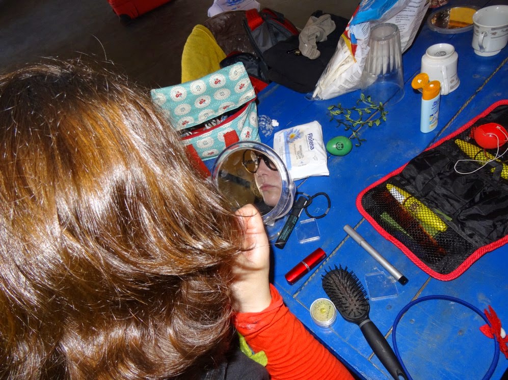 An der Schule angekommen setzten wir uns auch gleich unsere Nasen auf und bauen spielend unsere Bühne auf .