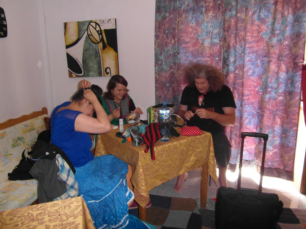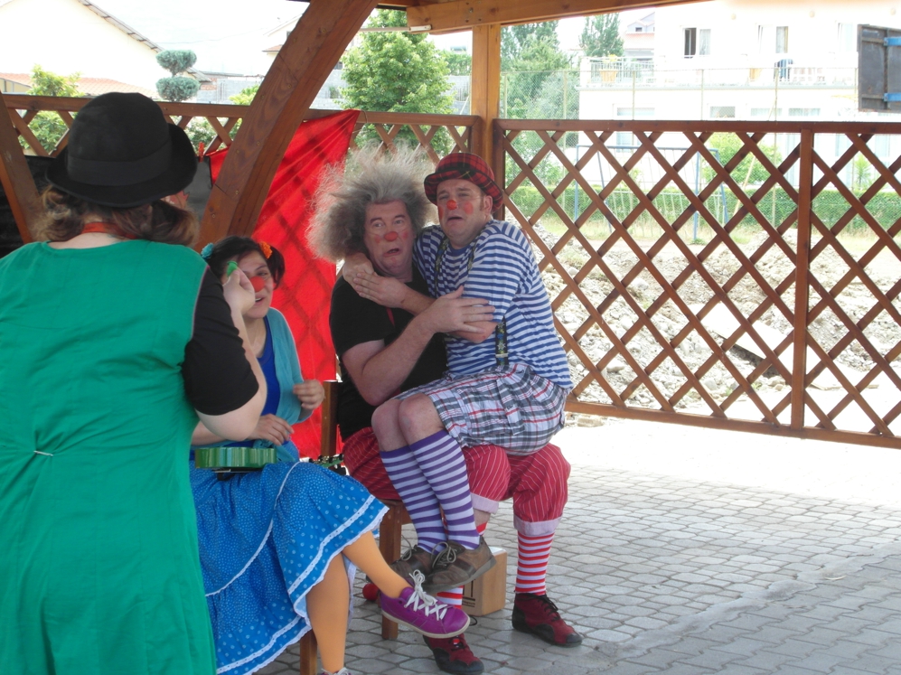 Angekommen in Elbasan trafen wir uns mit Schwester Almuth von der Albanienhilfe Weilheim e.V. an einer Straßenkreuzung um gemeinsam zu ihrem Zentrum zu fahren. Dort wurden wir freundlich empfangen und unter einem Carport eine provisorische Bühne für die Clowns eingerichtet.