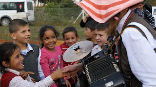 Neben den syrischen Kindern von Al Amal kamen noch fünf Schulklassen aus der türkischen Nachbarschule, erkennbar an ihren roten Schuluniformen. Nach der Vorstellung wurde unser 15-sitziger Tourbus wieder zum Schulbus in den ca. 50 Kinder hineingestapelt wurden, um sie nach Hause zu kutschieren. Wenn das das Jugendamt wüsste!