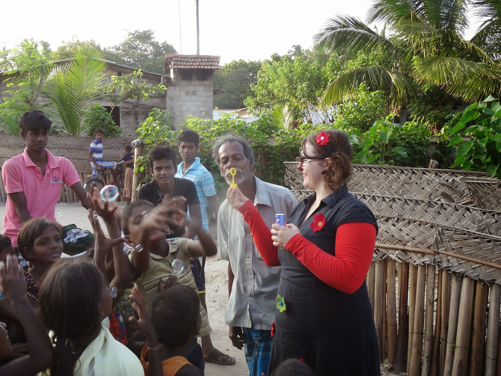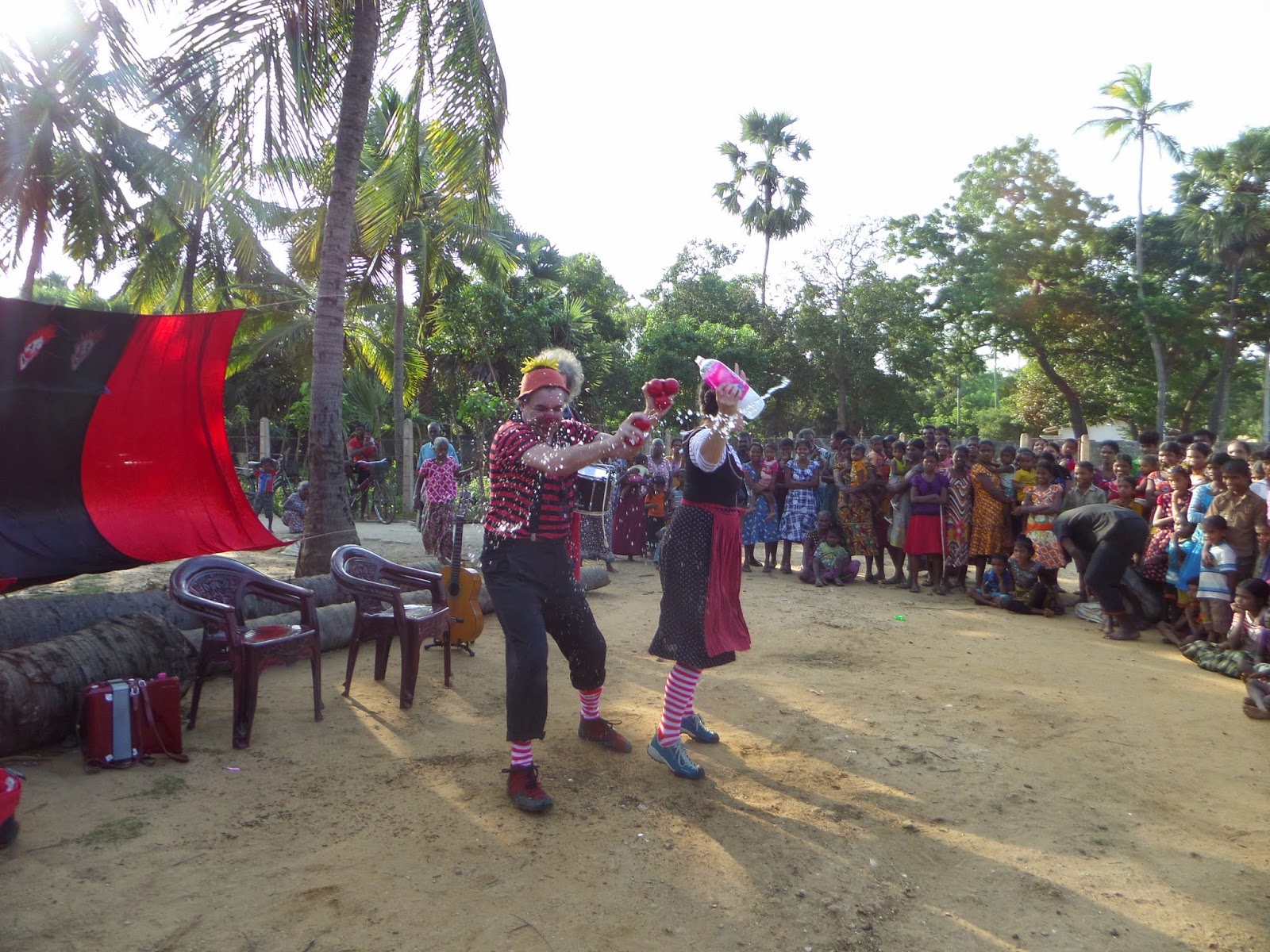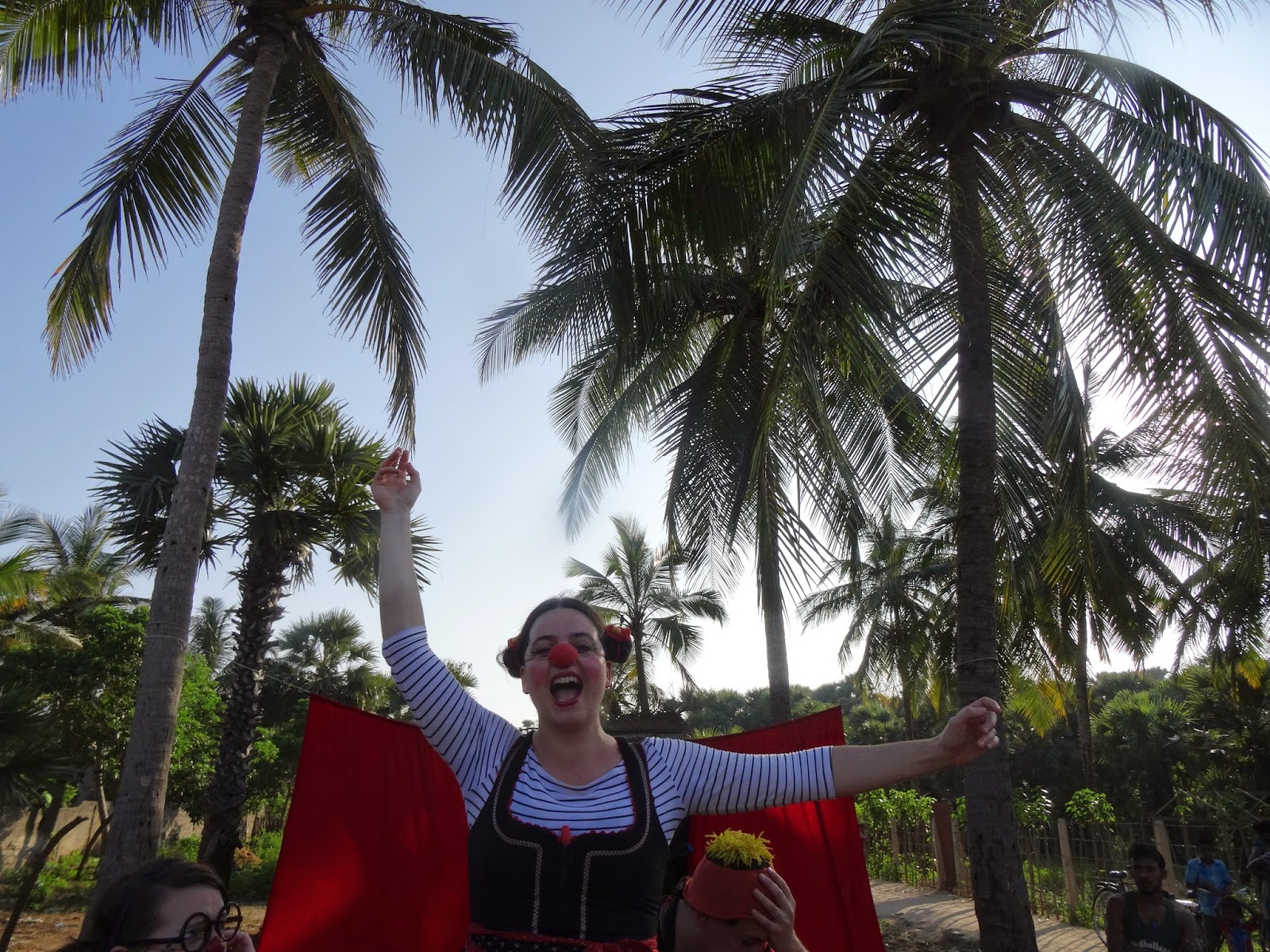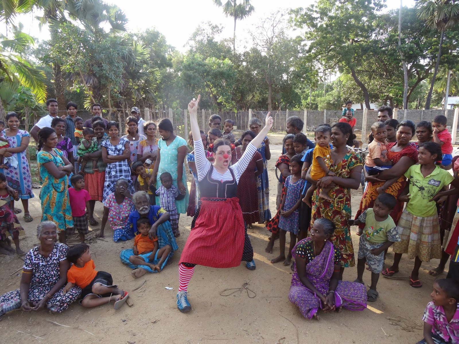 Angezogen von der Musik werden aus ca. 100 bald 300 Menschen! Wir spielen vor vielen großen Kinderaugen die halb den Mund aufhaben oder nur unglaublich begeistert kucken! Aber genauso wie die Kinder findet man immer wieder Erwachsene Augen die sich unser Treiben freudig und schmunzelnd anschauen! Nach der Show bleiben wir noch und spielen mit den Kindern. Einige haben uns einen Tag davor schon in einer Schule gesehen und sprechen uns mit Namen an oder machen Sachen nach die wir Gestern gezeigt haben.