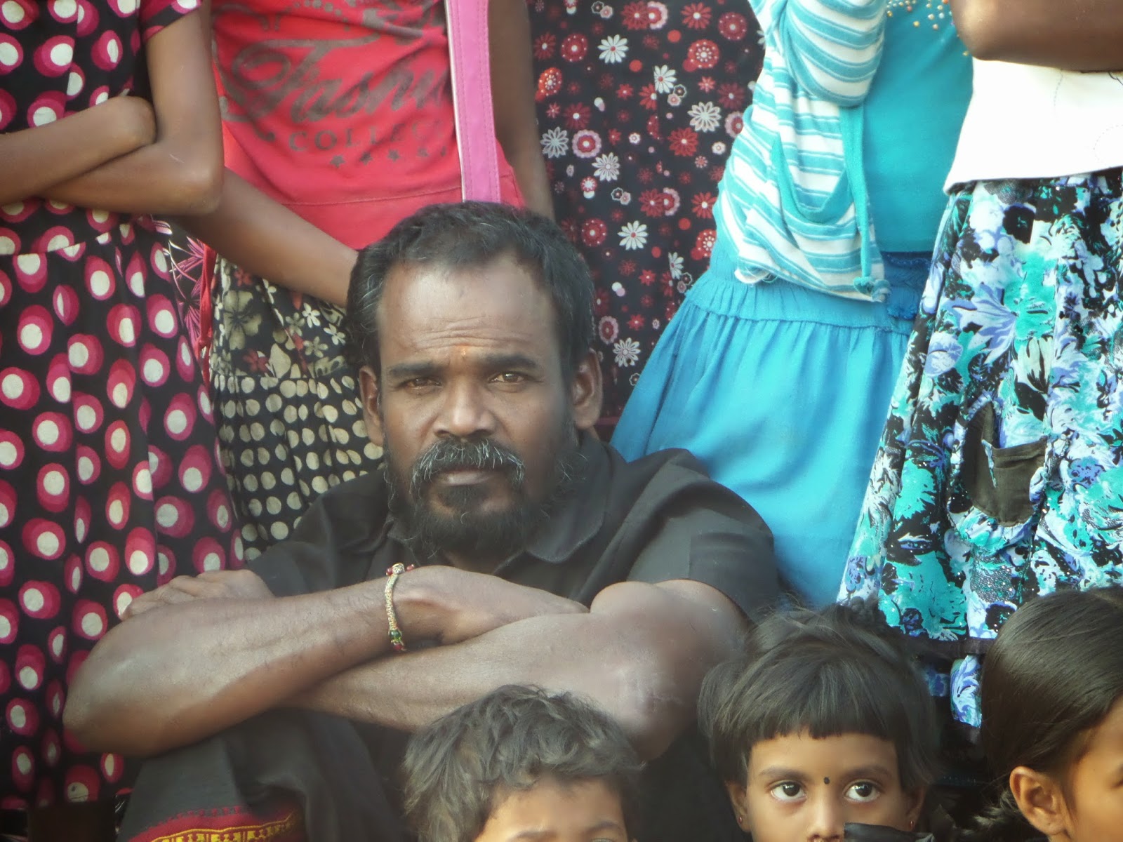 Ausgeschlafen und mit frisch duftendem Kostüm geht es los Richtung Pandaparapuh. Wir holen unseren Kontaktmann Baskaran und seine Frau Sarala noch an der Kreuzung ab.