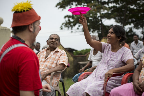 Unser Publikum war klein, und doch sehr groß. Empfangen wurden wir vom St. Albert’s Elders Home in Beruwela, wo wir für die dort lebenden Senioren und Seniorinnen spielten, jonglierten und musizierten. Bereits beim ersten Mitklatschen und Lachen wuchs nicht nur die Freude, sondern auch die Zuschauerzahl, denn Menschen kamen aus ihren Häusern und Geschäften zu den Zäunen, um mitzugenießen, und schnell hielten auch Tuk-Tuks und Busse an…