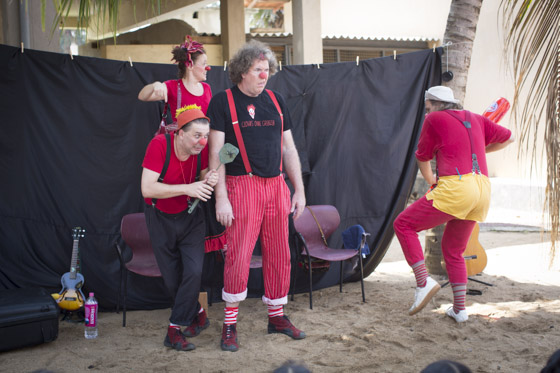 Die letzten beiden Shows vor der Dernière: Vormittags haben wir im Salani-Kinderheim in Wennapuwa 60 Kinder zum Lachen gebracht. Nachmittags waren wir zu Gast in einer christlichen Schule und haben vor knapp 1000 Zuschauern mit einem dankbaren Publikum eine Super-Show gespielt. Wir freuen uns schon auf die morgige Dernière, der letzten Show, bei der jeder Clown während der Show „leider“ nur eine Szene anders spielen darf, als abgesprochen. Pippi hatte heute während der Mittagspause eine Kostprobe geliefert, indem sie Matte aus seinem Mittagsschlaf mit einem Kübel Wasser aufgeweckt hat. Am Abend gab es leckeren Bananen Pancake mit Honig, hmmm. Wir haben heute endlich unseren Fotografen Thomas Victor, dem wir die ganzen tollen Fotos verdanken, selber auf einem schönem Foto festhalten können.