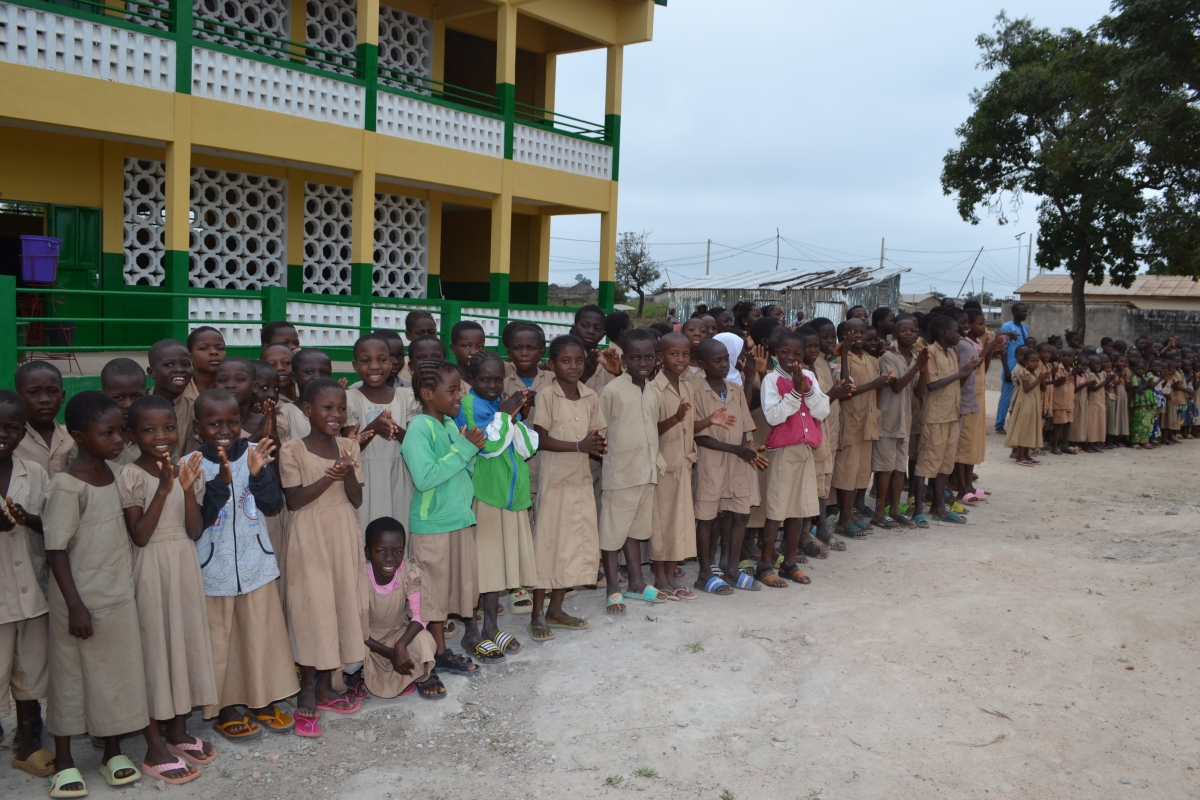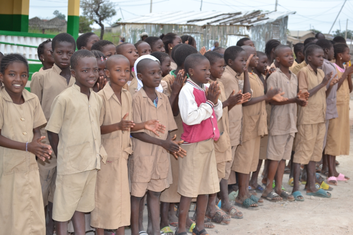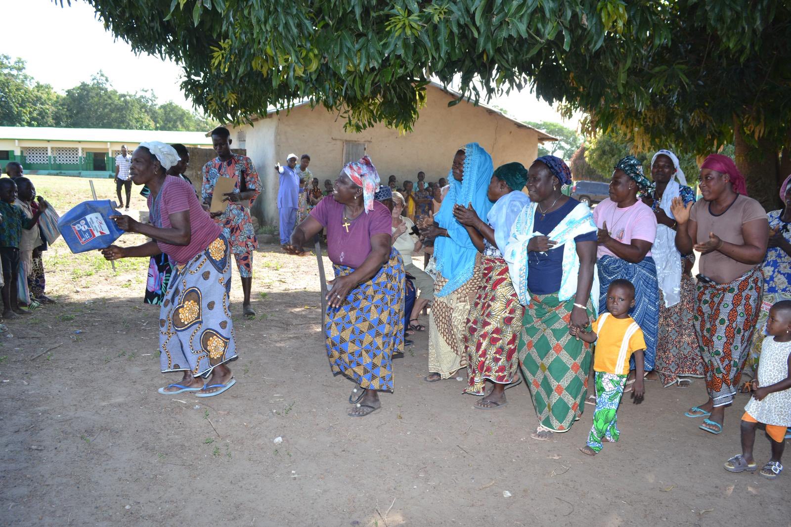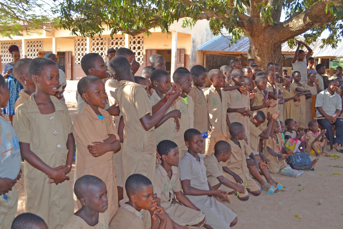 Nicht nur die Schule ist versammelt, das halbe Dorf ist gekommen. Selbst der König hat sich angekündigt. In dieser Schule berichtet man uns von einem besonderen erwähnenswerten Ziel. Hier wird sich gezielt dafür eingesetzt, dass besonders die Mädchen ihre Schulbildung fortsetzen. Der Schulabbruch vieler Mädchen ist in Benin ein großes Thema. Viele verlassen die Schule bereits zwischen der 5. und 9. Klasse. Häufig liegt das daran, dass Familien ihre Töchter in andere Regionen, meistens nach Nigeria, schicken (bis 50.000 Kinder im Jahr), um dort als Haushaltshilfen zu arbeiten, oder sie müssen schlichtweg auf dem eigenen Feld helfen.
