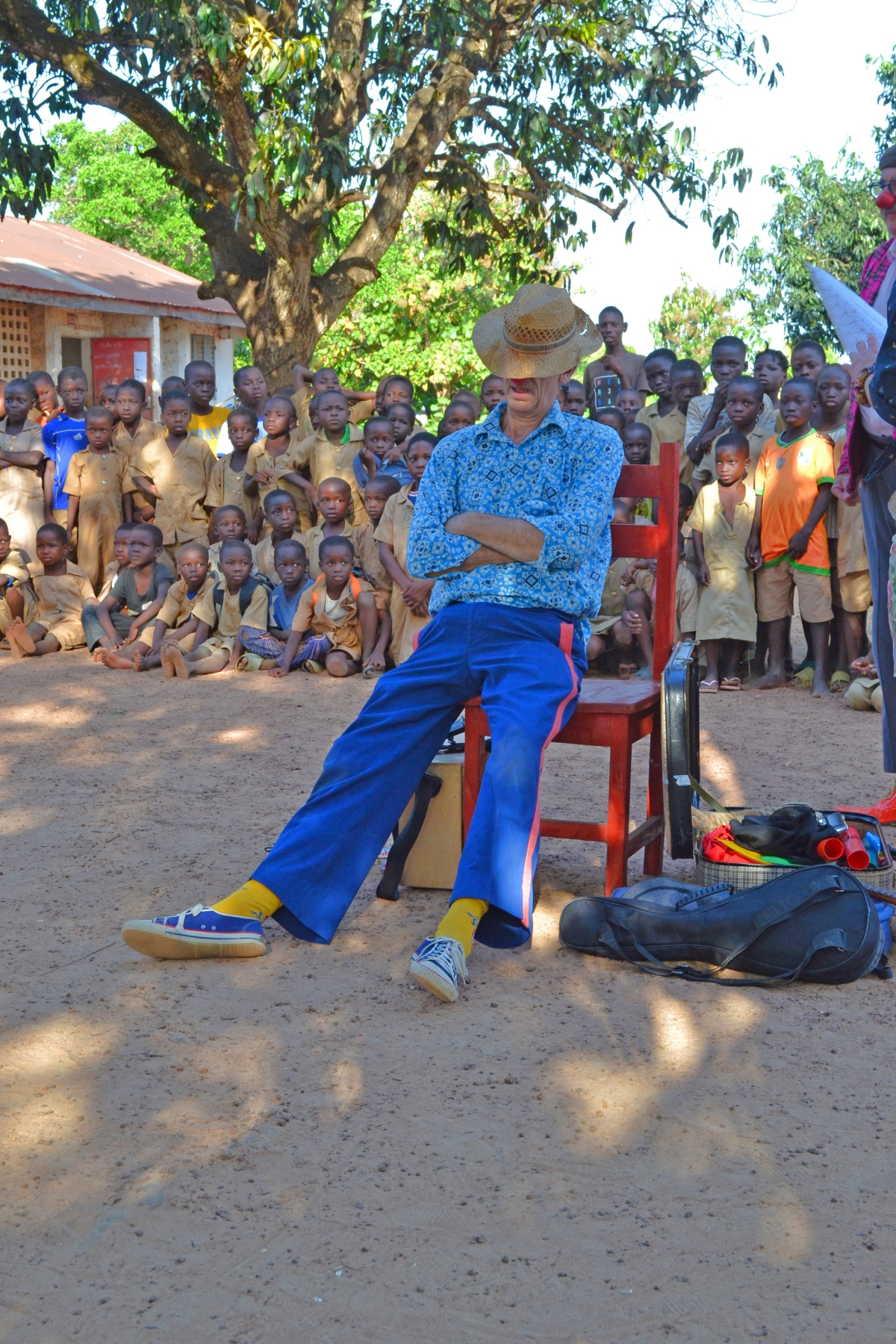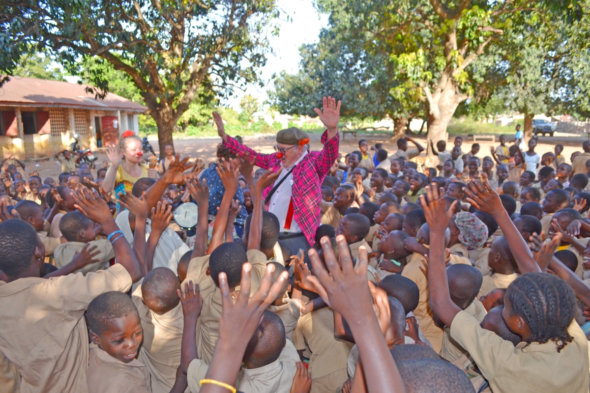 An diesen Auftritt werden wir uns noch lange erinnern. Die Kinder fiebern mit uns Clowns, lachen, schreien und jubeln, und als das Finale gespielt ist, bricht der Damm. Hunderte kleine Hände stürmten auf uns zu. Alle wollen uns berühren, festhalten, spüren. Manche streichen neugierig über unsere Haut, um zu prüfen, ob sich darunter vielleicht dunkle Farbe versteckt. Viele haben hier vermutlich noch nie einen Europäer aus nächster oder nahbarer Nähe gesehen.