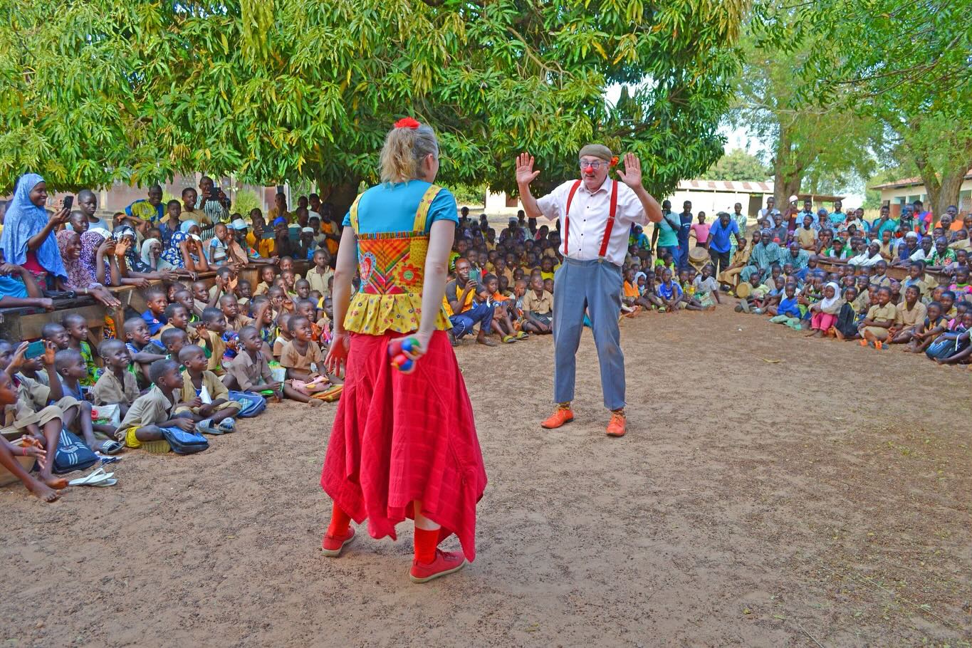 Und während wir Clowns tanzen und spielen, stehen die Kinder und Erwachsenen dicht gedrängt um uns, lachen, jubeln und klatschen. Vielleicht ist das Lachen hier heute mehr als nur Spaß. Vielleicht ist es ein kleines Stück Freiheit, ein Vorbild, ein Moment, der Mut macht, dranzubleiben. Denn jedes Mädchen, das weiter zur Schule geht, verändert nicht nur seine eigene Zukunft, sondern die seines ganzen Dorfes und somit die des ganzen Landes.