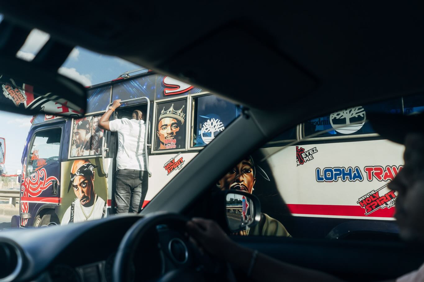 Vorbei an Hochhäusern mit bunt getupften Fassaden, wo die Wäsche zum Trocknen flattert. Vorbei an schiefen Wellblechhütten, an halbfertigen Betongebäuden, vielleicht seit Jahren im Bau, vorbei an Tuktuks und Ziegen und an Menschen, die Wasser, Taschentücher oder Ananas anbieten, quälen wir uns durch den Sonntagnachmittagsverkehr Richtung Vorstadt, wo er mit seiner Familie lebt.