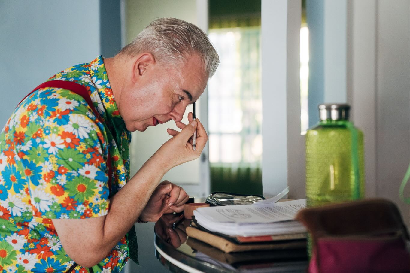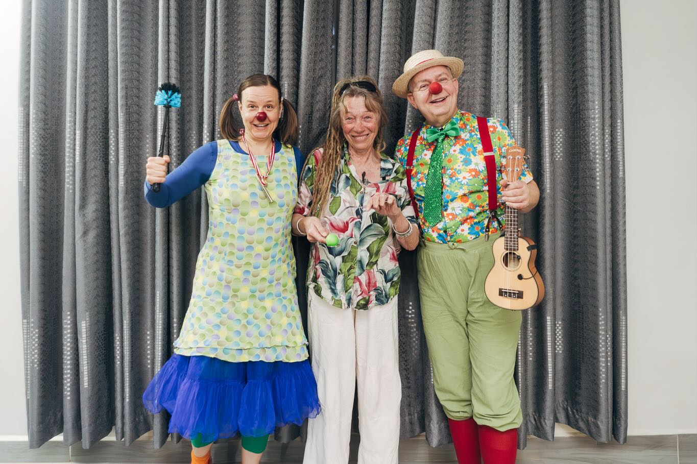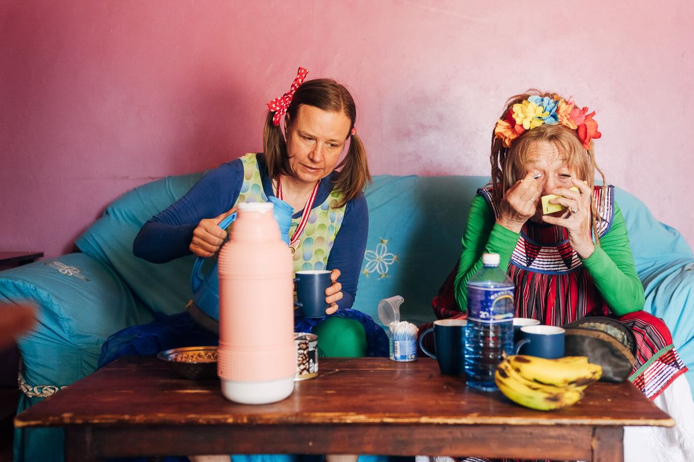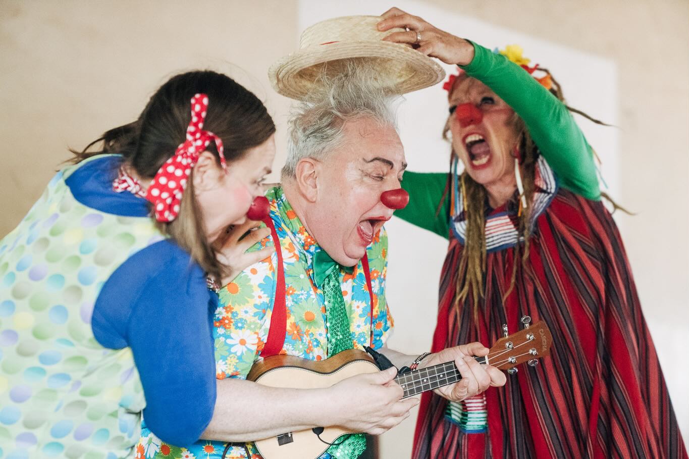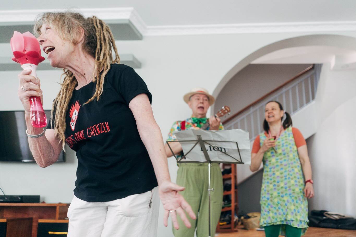 Am Vormittag zunächst ein erster Durchlauf zu dritt – unsere Gastgeber sind begeistert von der Generalprobe im Wohnzimmer. Wir sollten uns keine Sorgen machen, falls irgendwas schief läuft, ermutigt uns Francis. Gerade die Fehler seien lustig. Besser lässt sich das Clownspiel nicht auf den Punkt bringen. Wir feiern das Scheitern.