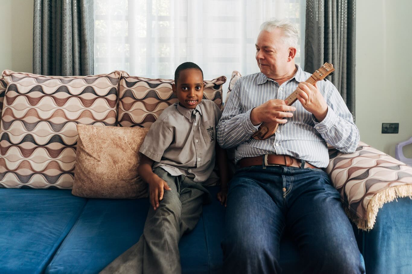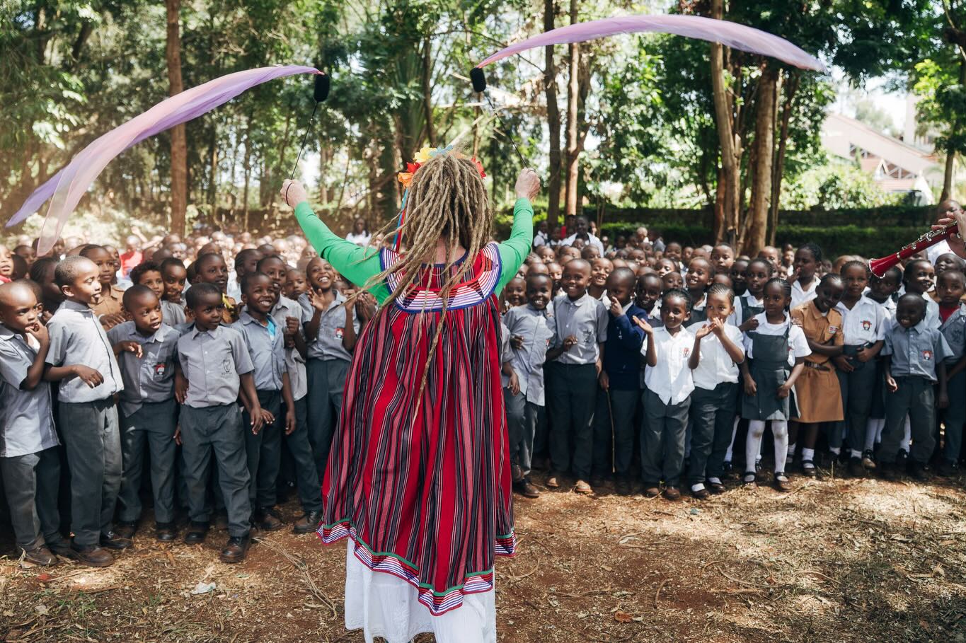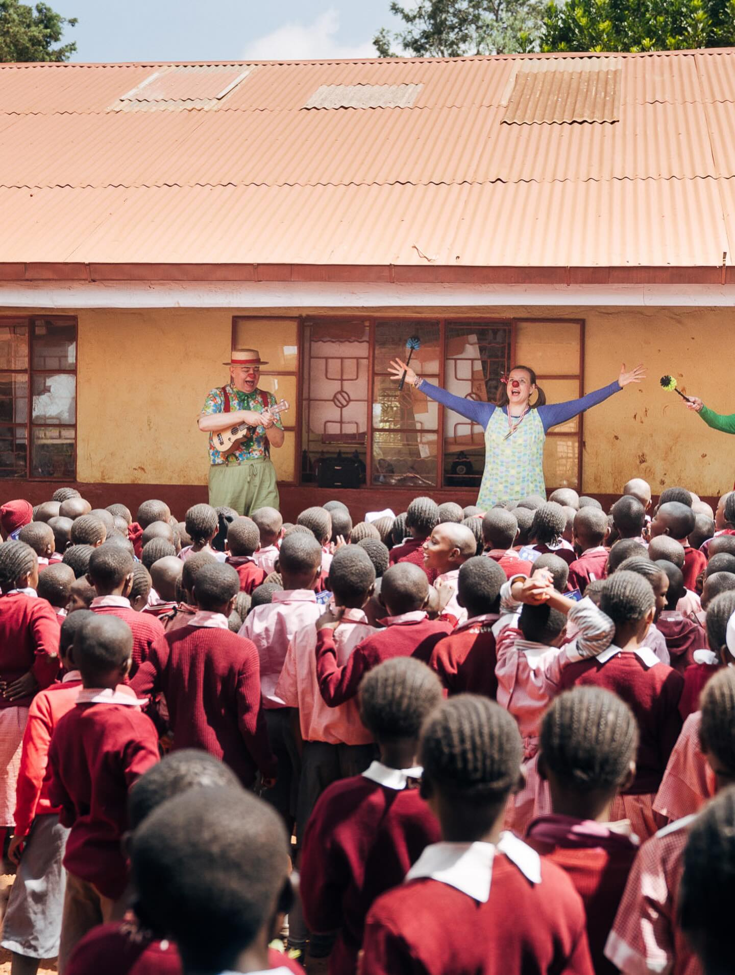 Auf Eddie zum Beispiel können wir uns verlassen. Sobald etwas schief geht, eilt der 12-Jährige zu Hilfe. Er baut behende den klapprigen Notenständer auf und hilft Heleneken, Pelle aus den Hosenträgern zu befreien. An die hundert Kinder tanzen nach der Show mit uns auf dem Schulhof, aus den Lautsprechern tönen kenianische Rhythmen. Es ist ein großes Wiedersehensfest. Und auch ein Abschied.