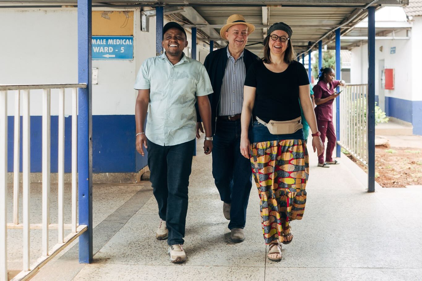 Erster Programmpunkt heute: der Besuch im örtlichen Kreiskrankenhaus. Wir wohnen bei Francis und Lilian in Thika, einer 250.000-Einwohner-Stadt im Speckgürtel von Nairobi. Die Industriestadt ist bekannt für ihre Ananas- und Kaffeeindustrie, die Exporte gehen nach Europa und in die USA. Das Thika Level 5 Hospital zählt fast 500 Betten und versorgt jeden Tag bis zu 1000 Patient*innen ambulant.