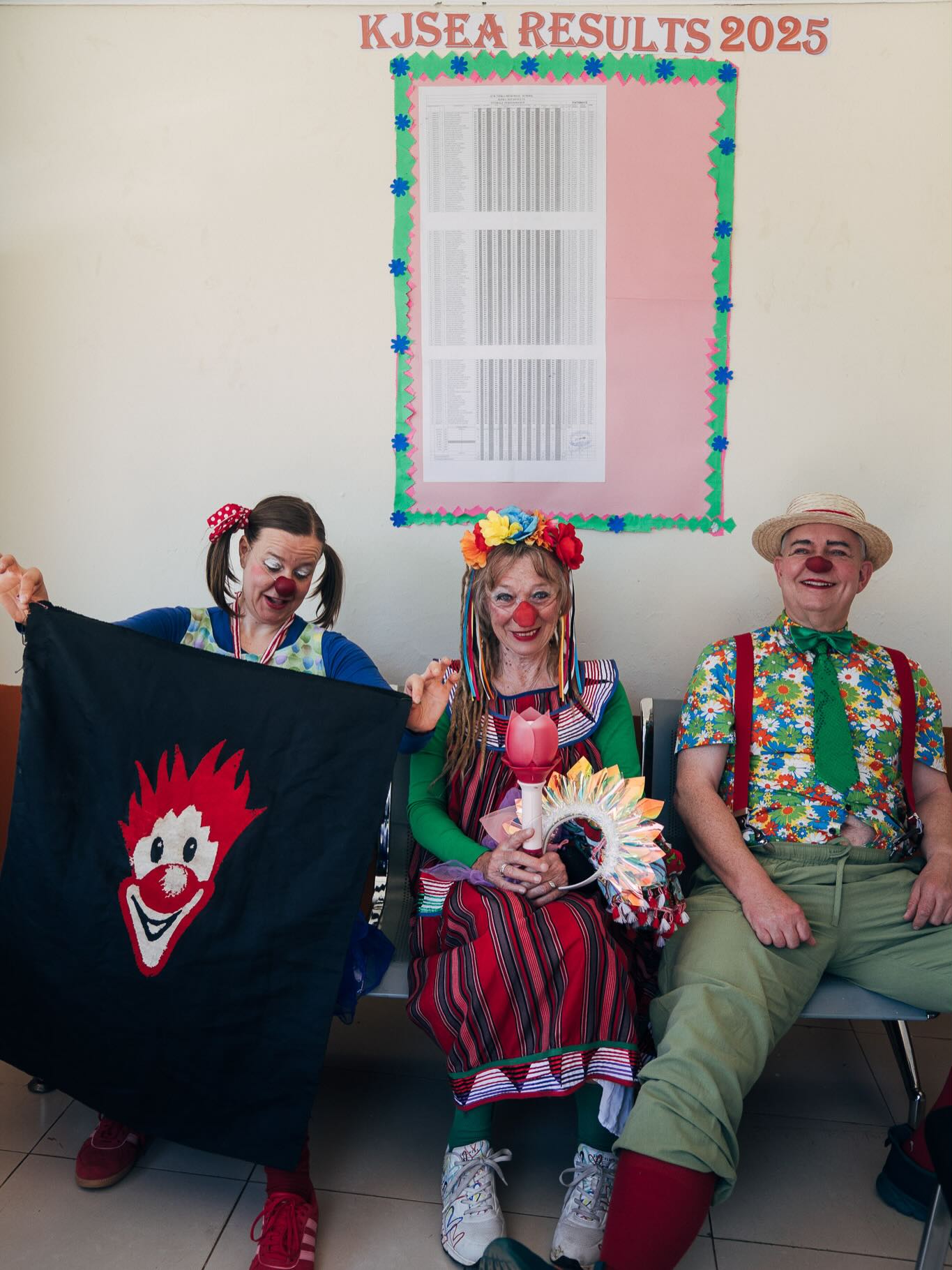 Die Premiere unter der prallen Äquatorsonne. Eine rote Nase für die Schulleitung. Das war unser dritter Tag.