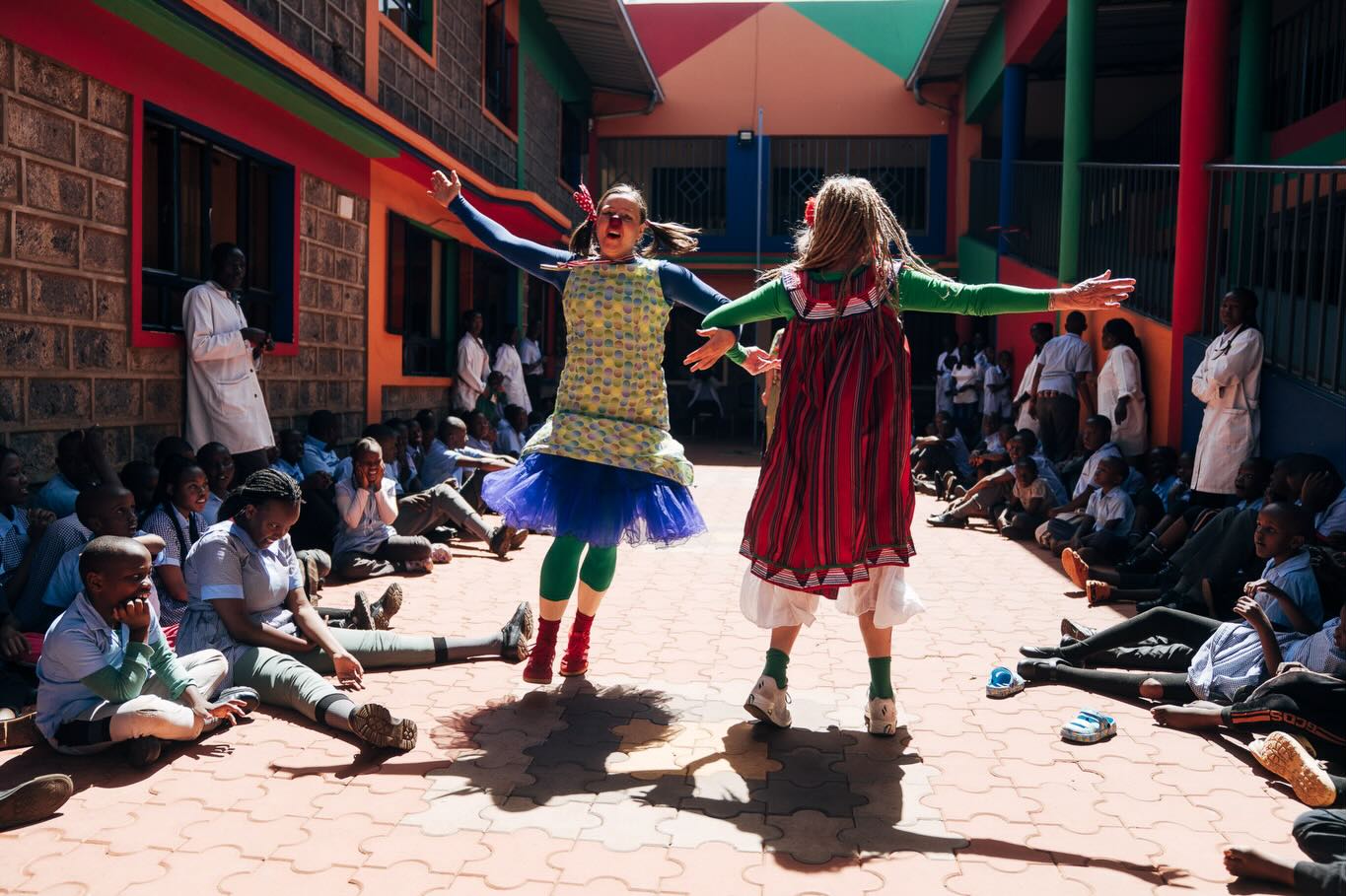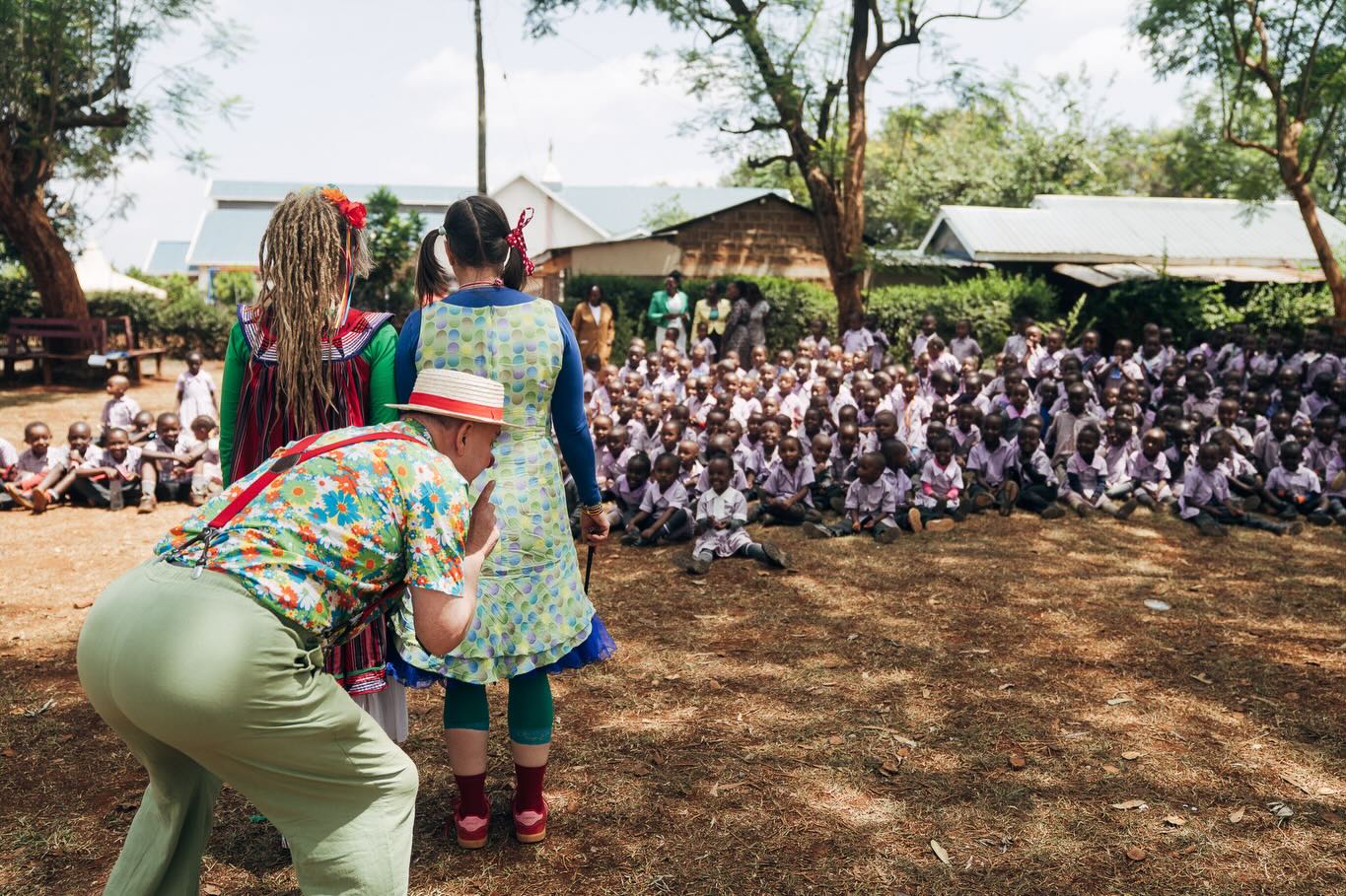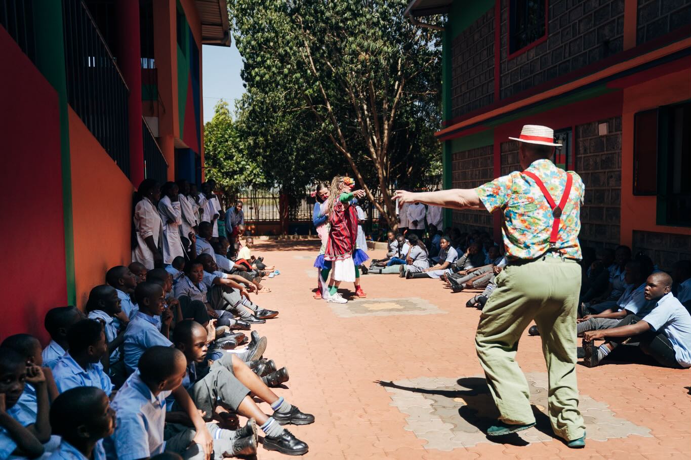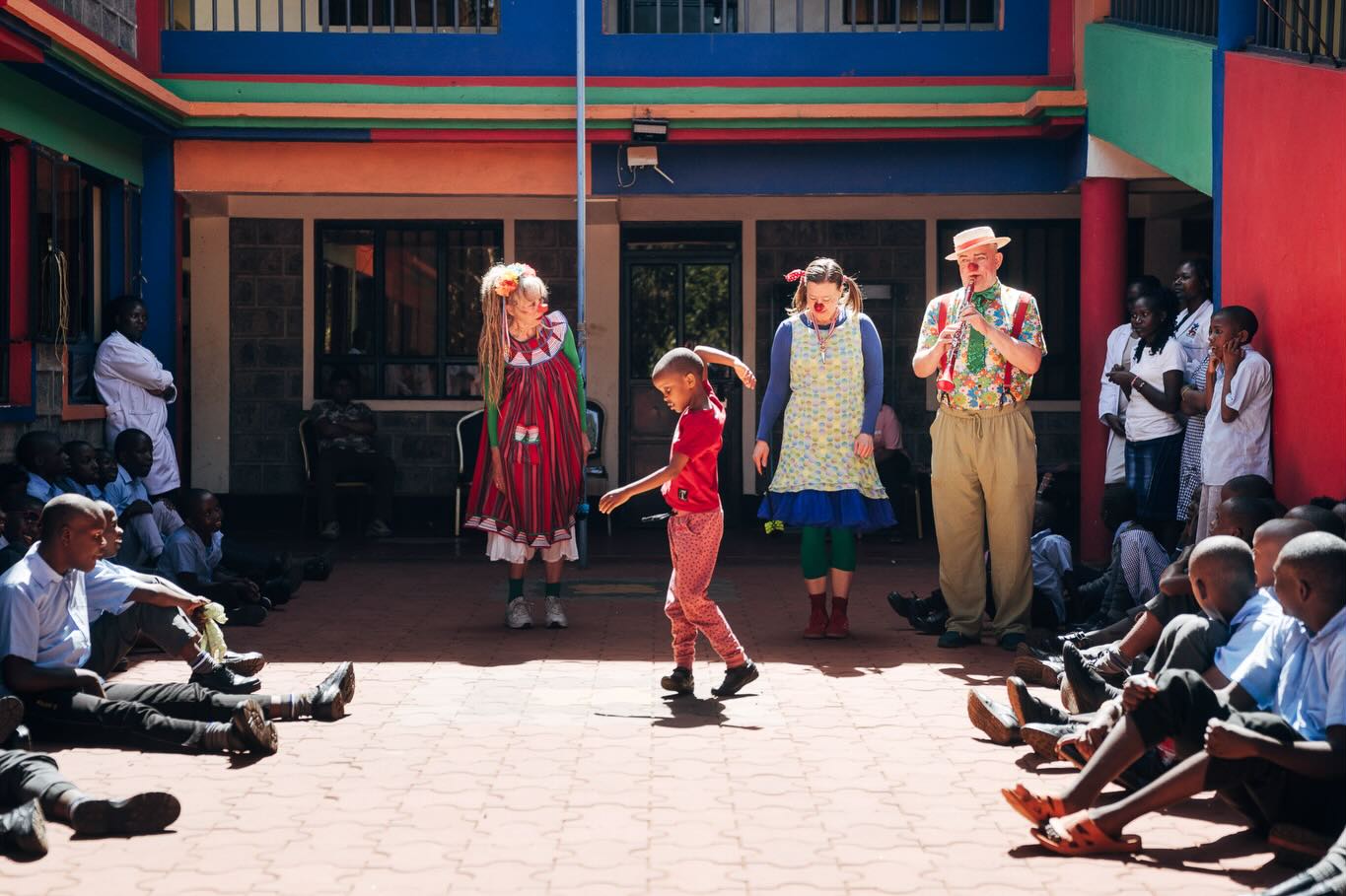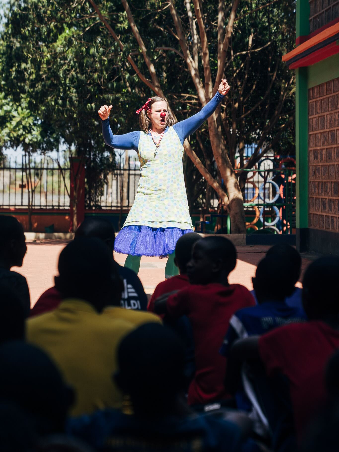 „Ist euch gestern etwas aufgefallen?“, fragt uns Francis auf dem Weg zur Show. Wir überlegen. Tausend Dinge fallen uns hier jeden Tag auf, aber worauf will er hinaus? Schließlich rückt er mit der Sprache heraus: Die Kinder in der Vorschulklasse hätten unsere Sprache nicht verstanden. Sie sprechen Kikuyu und Kisuaheli – aber kein Englisch. Trotzdem hatten sie riesigen Spaß. Wir hatten das gar nicht gemerkt – der Beweis, dass die Show auch ohne Worte prima funktioniert.