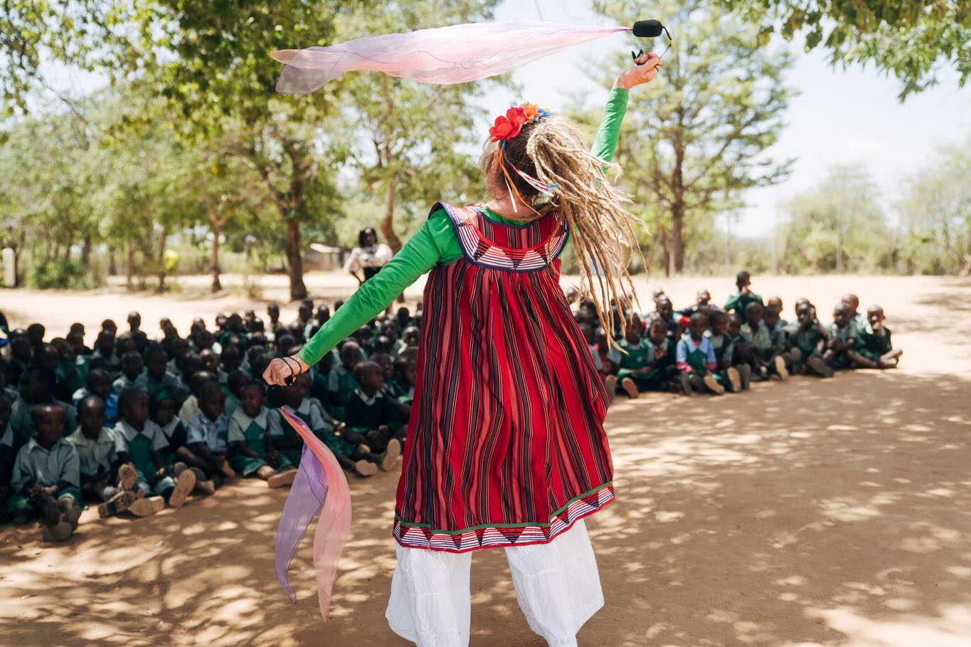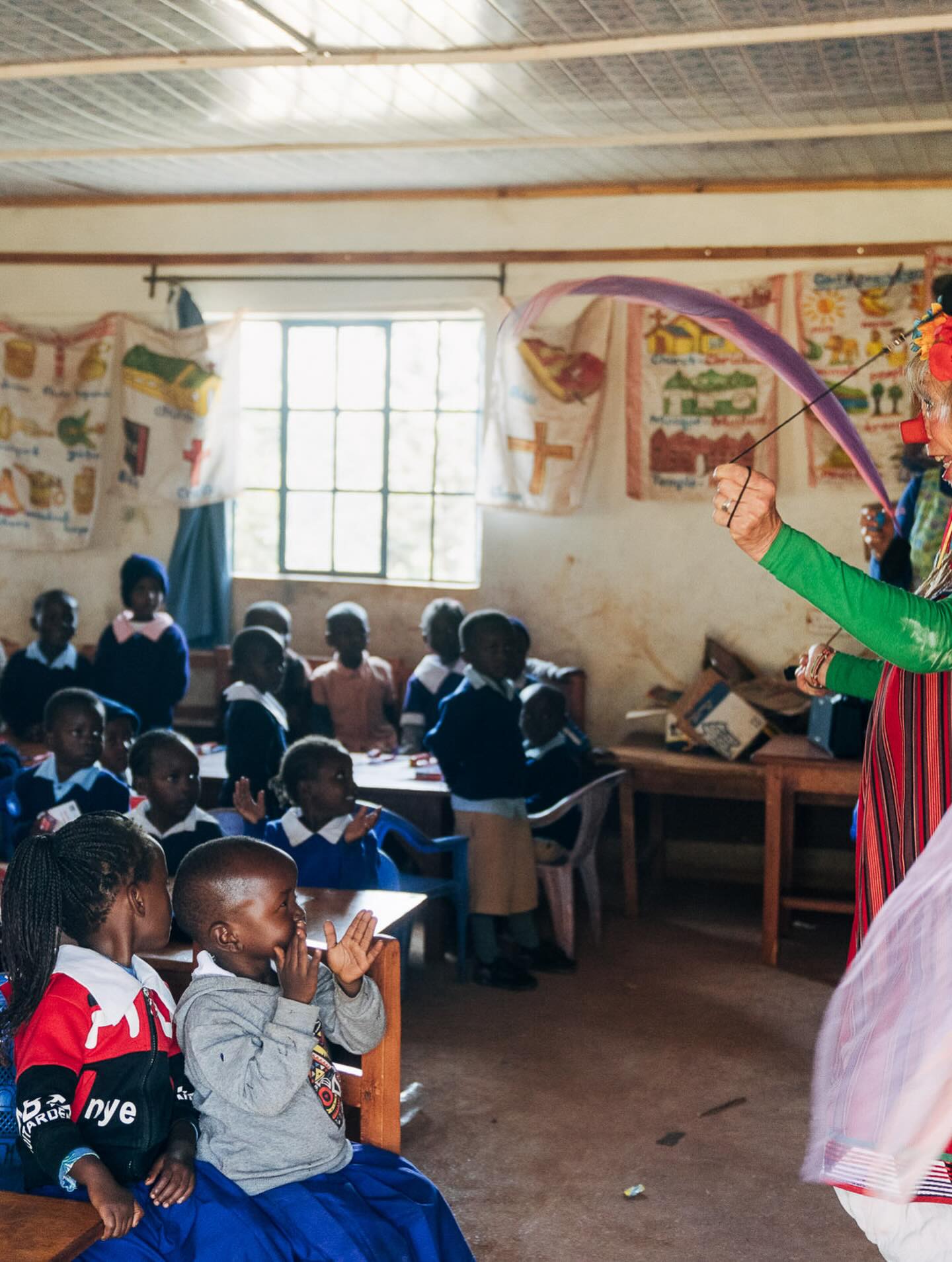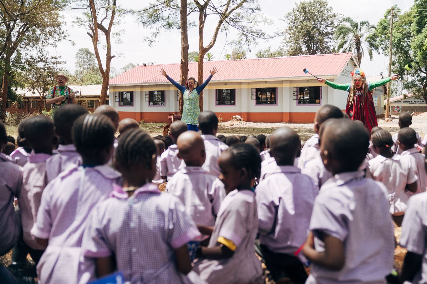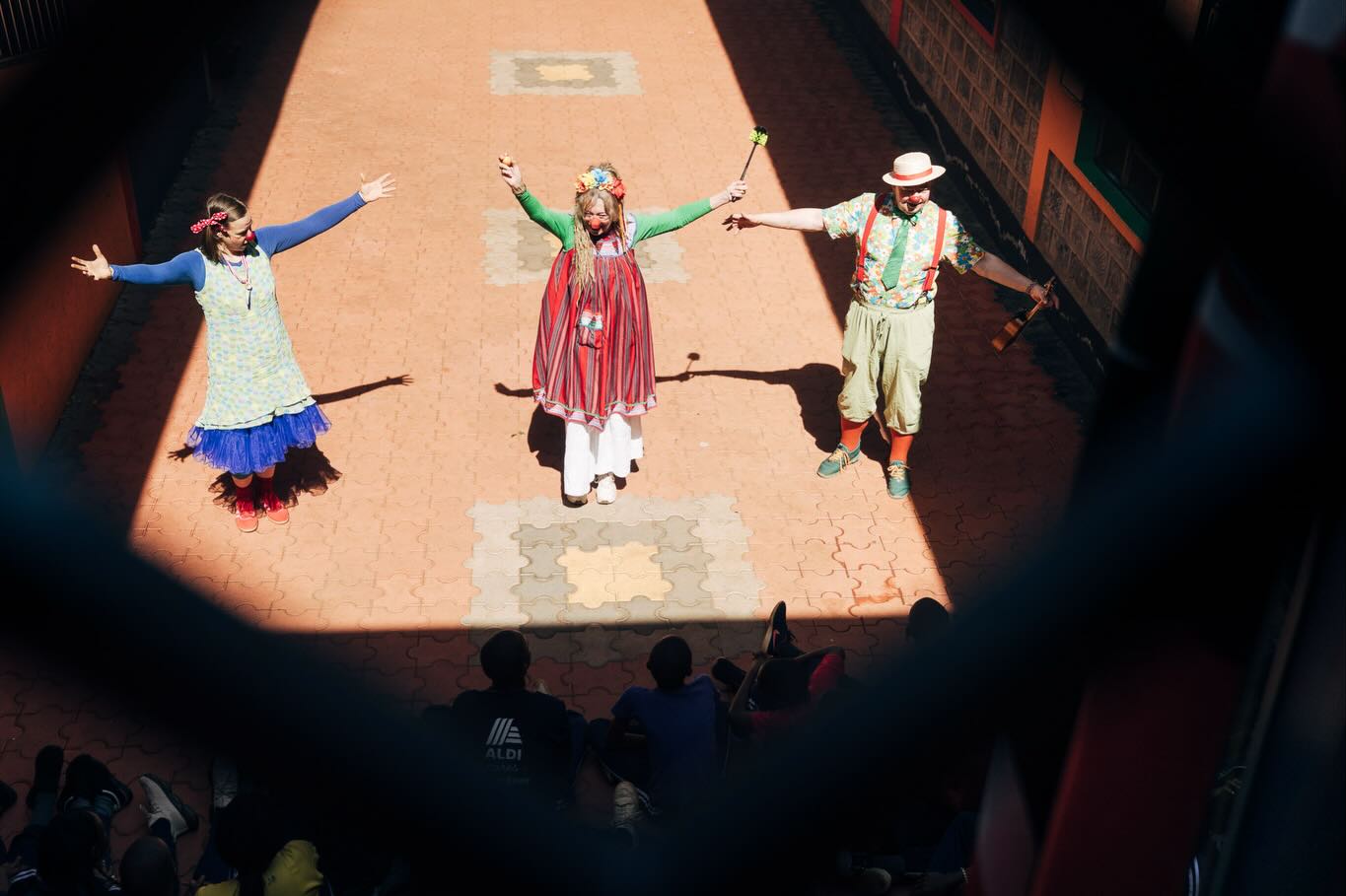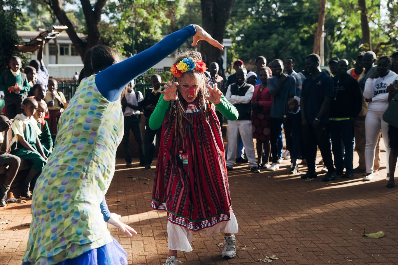 „Ist euch gestern etwas aufgefallen?“, fragt uns Francis auf dem Weg zur Show. Wir überlegen. Tausend Dinge fallen uns hier jeden Tag auf, aber worauf will er hinaus? Schließlich rückt er mit der Sprache heraus: Die Kinder in der Vorschulklasse hätten unsere Sprache nicht verstanden. Sie sprechen Kikuyu und Kisuaheli – aber kein Englisch. Trotzdem hatten sie riesigen Spaß. Wir hatten das gar nicht gemerkt – der Beweis, dass die Show auch ohne Worte prima funktioniert.
