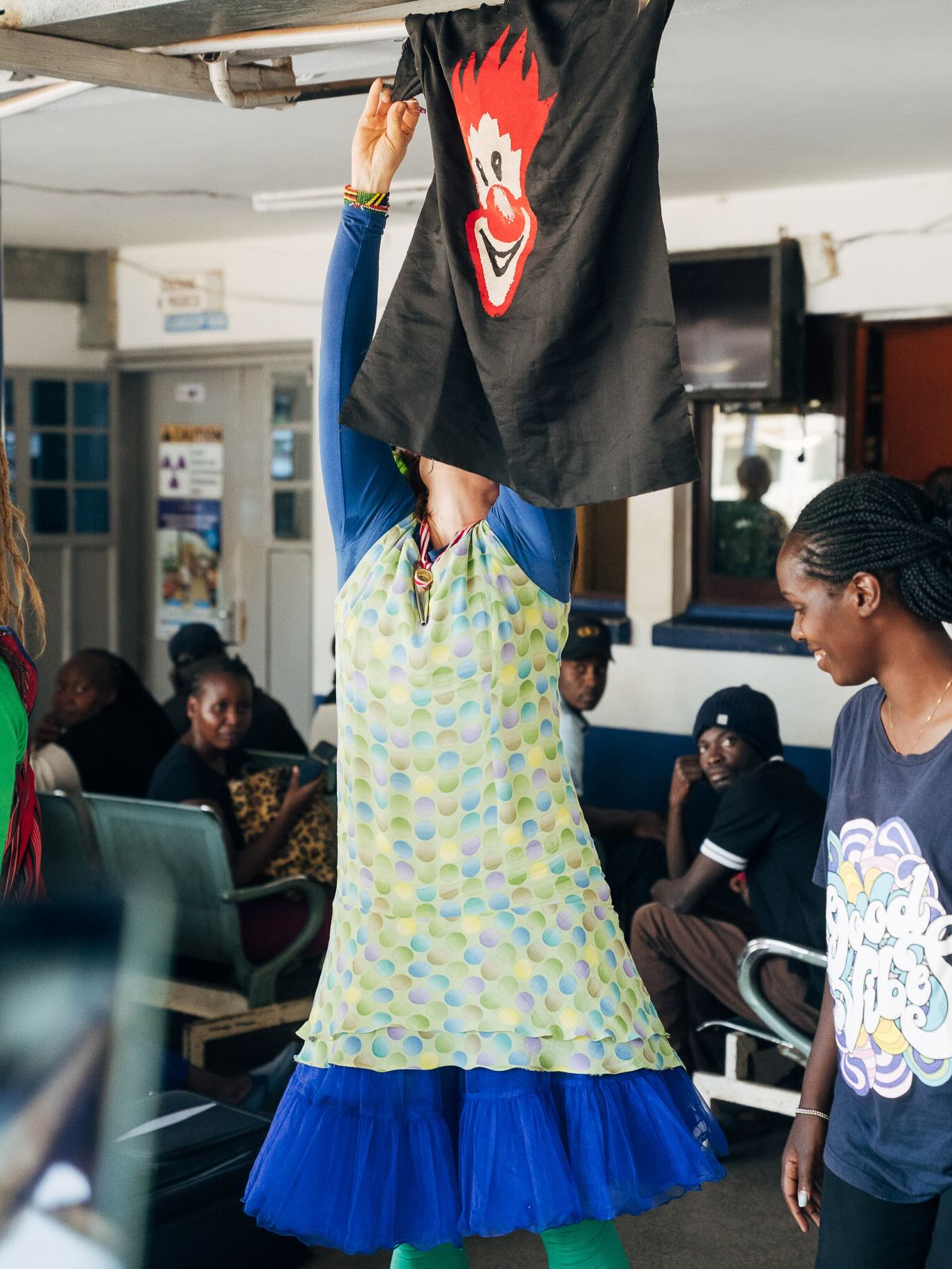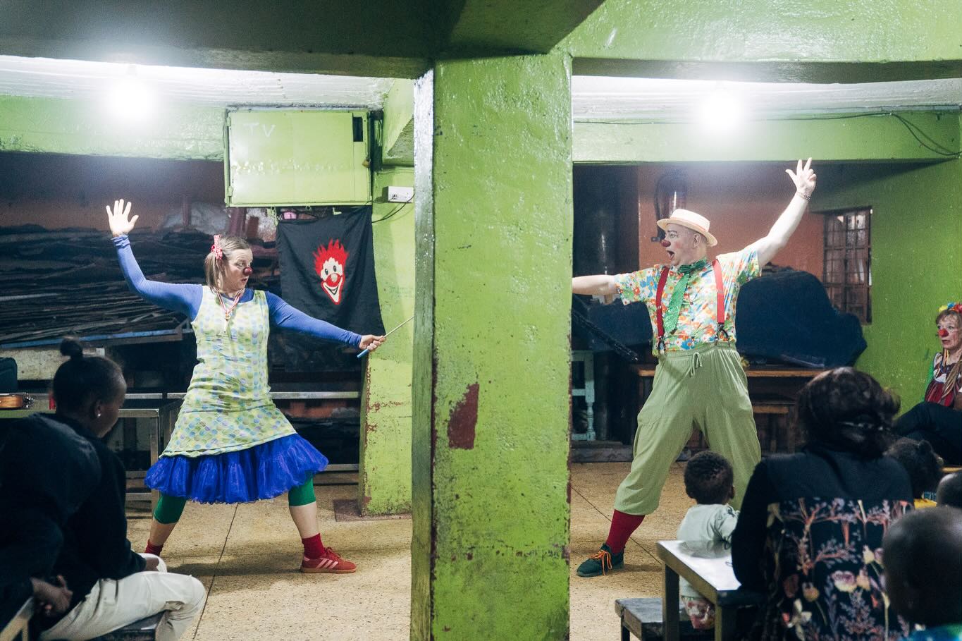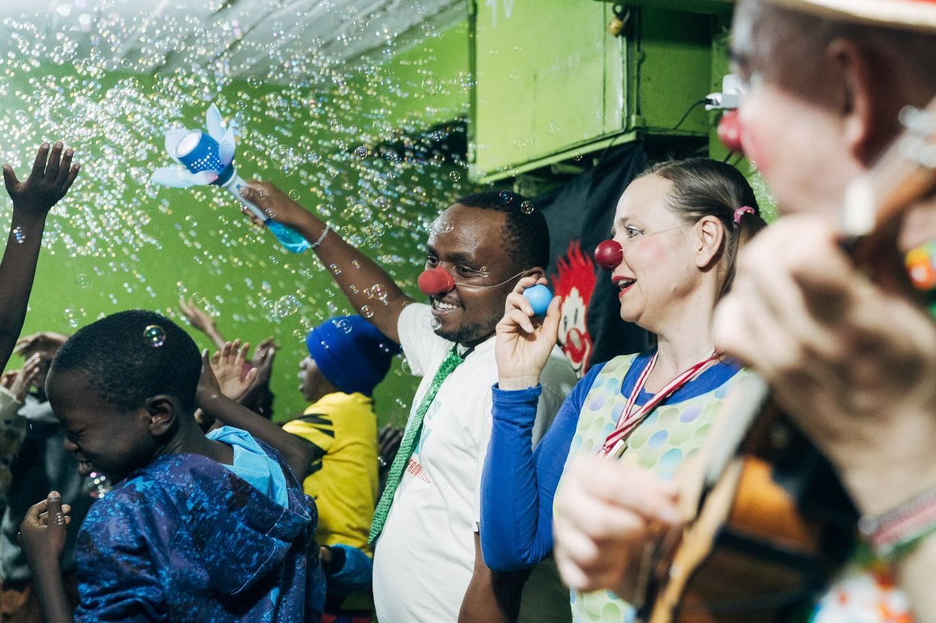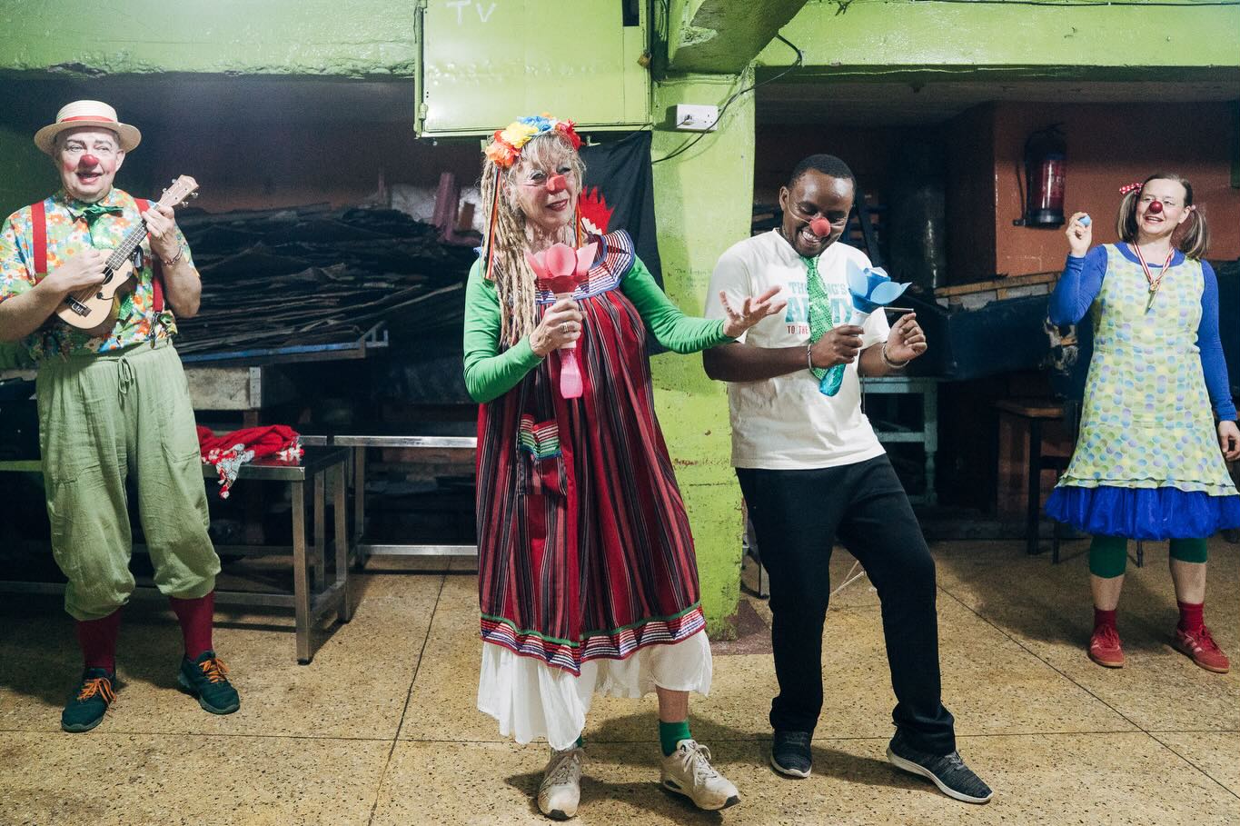Samstagabend am Flughafen. Die Koffer sind voll gepackt: rote Nasen, Seifenblasenmaschinen, Kostüme, Schminke, alles für zwei Wochen Nairobi. Und dann heißt es am Check-in plötzlich, unser Visum sei nicht gültig. Nicht lange genug. Also nicht für die gesamte Reise.
