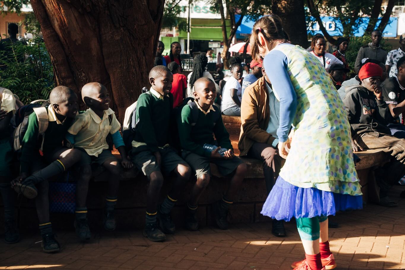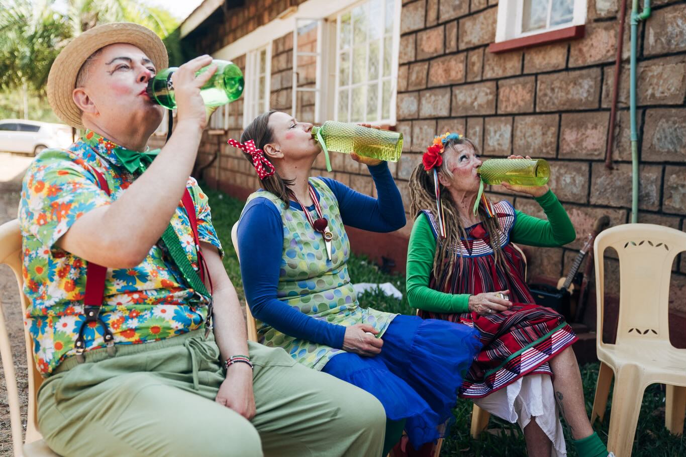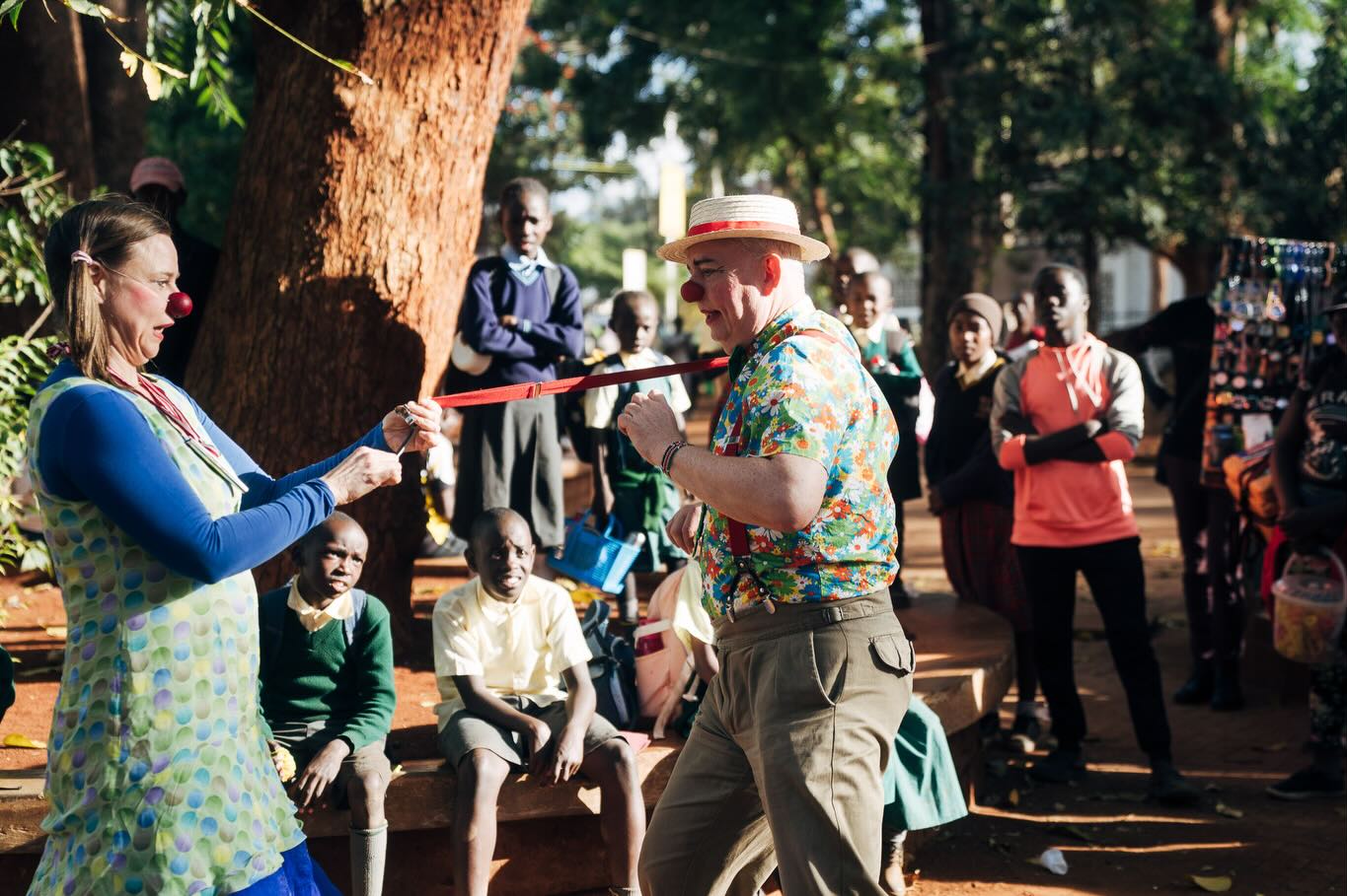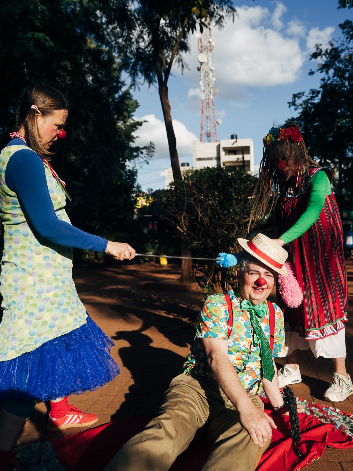 Samstagabend am Flughafen. Die Koffer sind voll gepackt: rote Nasen, Seifenblasenmaschinen, Kostüme, Schminke, alles für zwei Wochen Nairobi. Und dann heißt es am Check-in plötzlich, unser Visum sei nicht gültig. Nicht lange genug. Also nicht für die gesamte Reise.