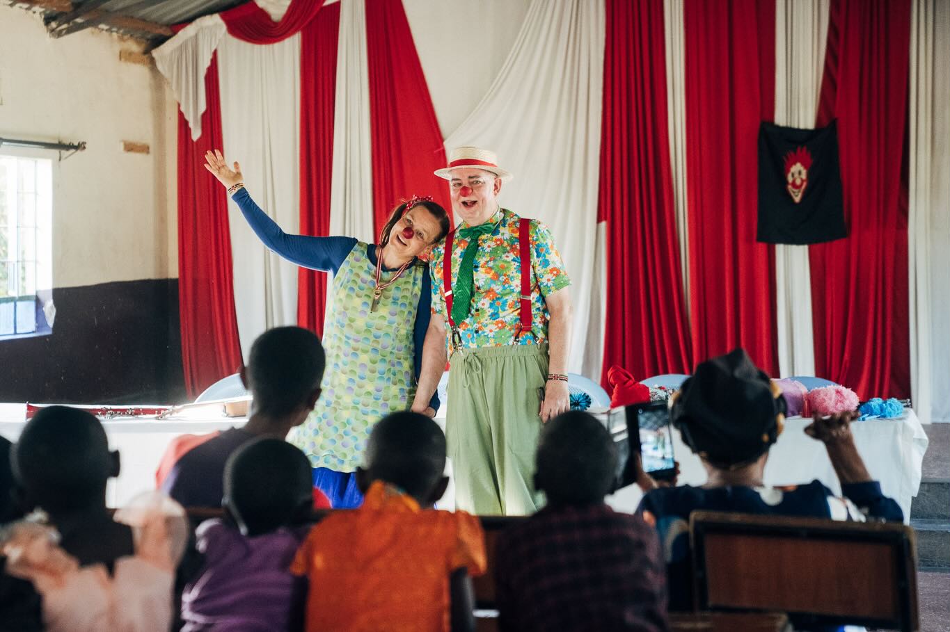 Rechtzeitig zum gemeinsamen Abendgebet – Francis und Lilian sind sehr aktiv in der örtlichen Pfingstgemeinde – klingelt Sonja an der Tür. Endlich alle Clowns vereint! Nach der Bibellese ein kurzer letzter Impro-Auftritt vor der Familie. Alle da. Bühne frei für die nächsten zwei Wochen.