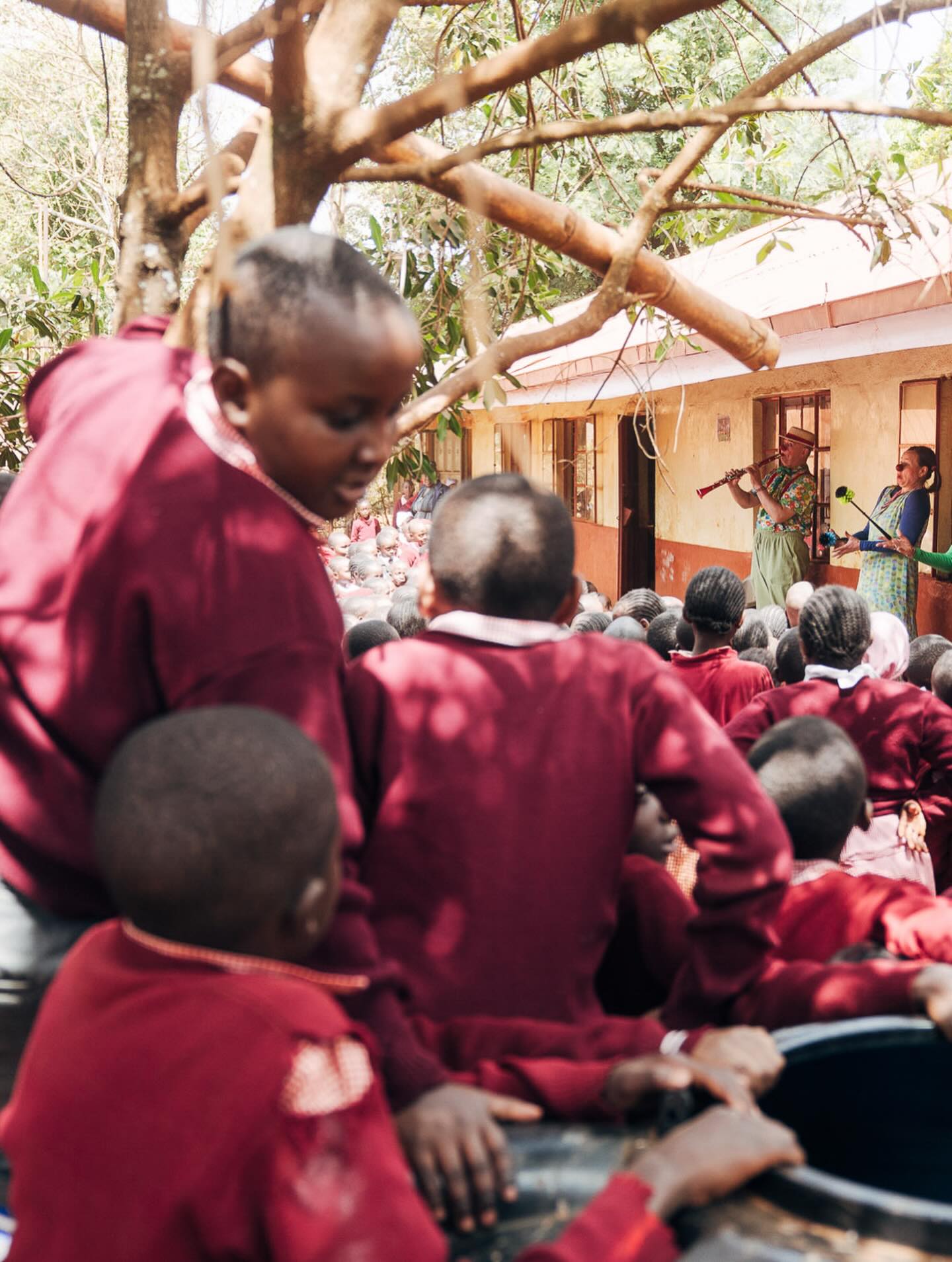 Das Gesetz sehe Schulpflicht und kostenlose Grundschule vor, sagt Francis. In manchen Gegenden gebe es allerings gar keine Schulen, und viele Familien könnten sich den Schulbesuch nicht leisten. Die ACK Thika Memorial Church School wird getragen von der Anglikanischen Kirche, die Eltern zahlen hier umgerechnet rund 1000 Euro Schulgeld pro Jahr. Die Kinder begrüßen uns mit stürmischem Applaus. Sie sind vom Beginn des Auftritts an voll dabei, gehen mit, feuern uns an und fiebern mit. Wir haben nicht das Gefühl, vor einer Masse zu spielen, sondern wir schauen in begeisterte Gesichter.