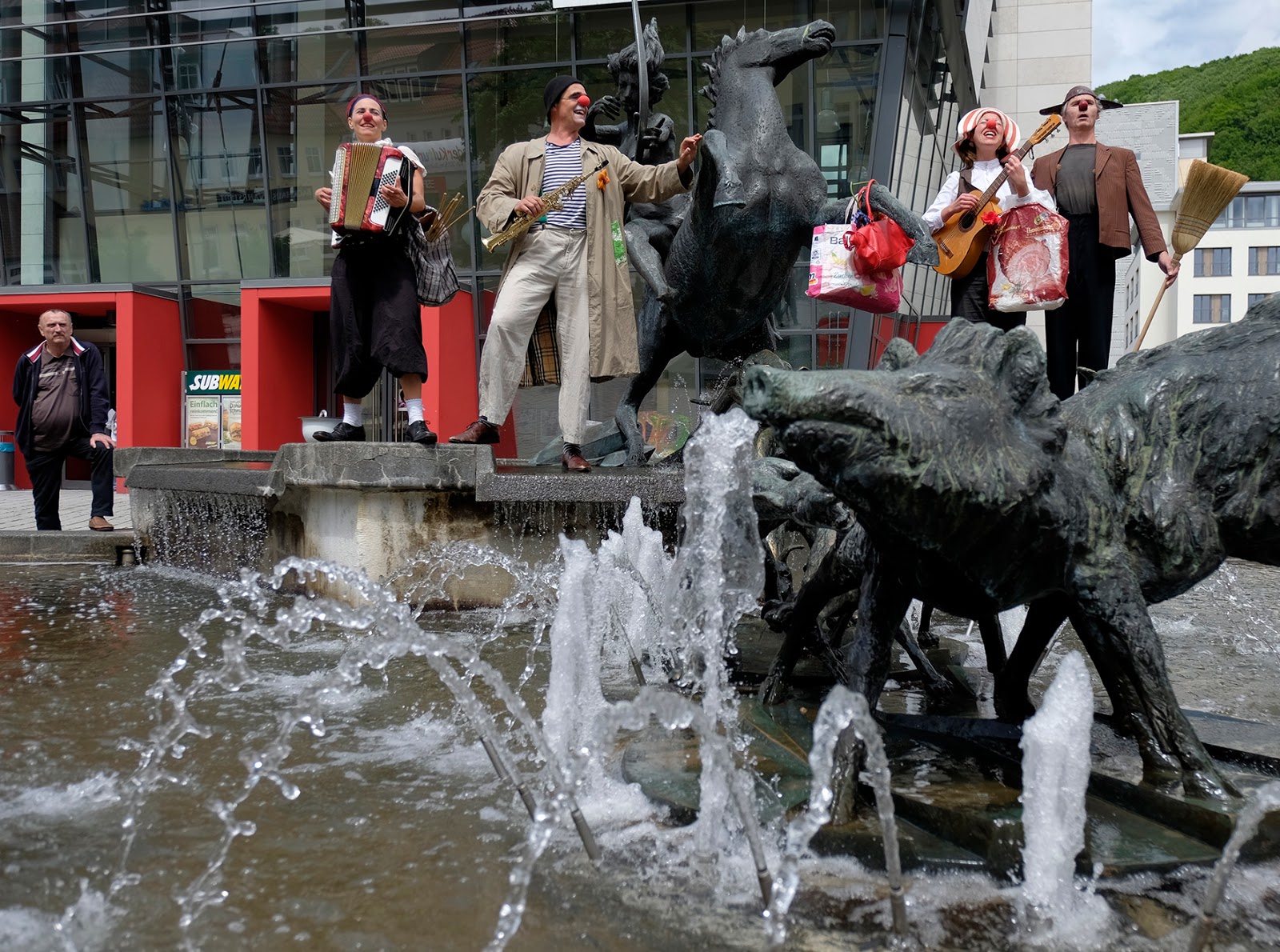 Dann weiter die Fußgängerzone entlang. Die Suhler begegneten uns – im Kostüm – irritiert, neugierig, offen, erfreut oder ignorierten uns vollständig.