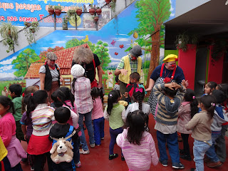 Zum zweiten Auftritt am Nachmittag im Kindergarten ICP Jardinde Ninio hier in Cajamarca erwarteten uns 70 Kinder und Erwachsene. Was für ein Unterschied zu der Dorfschule amVormittag.